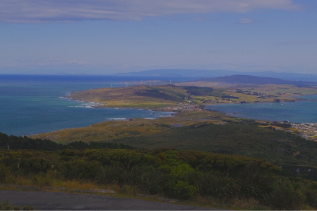 We drop Gay off for her Stewart Island adventure where she will hunt for kiwis and search for New Zealand birds in an environment focused on their protection. Many of the birds in NZ evolved to be flightless as there were no predators until recently. Today, sadly many species are endangered but can be found on Stewart Island. I look forward to hearing her stories and seeing her photos. From the Bluff cliff overlook, we watch her ferry bounce across the waves in the distance.