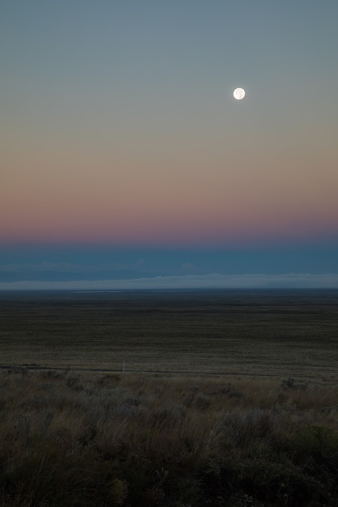 Moonlit sunrise over the dunes, chilly and gusty but quite a spectacle.