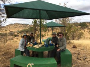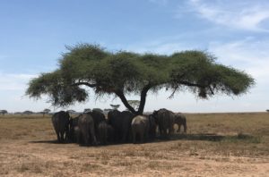 Today starts out beautifully as we leave early on a game drive while the weather is cool. Almost immediately we see herds of zebras and wildebeest traveling in lines that stretch for miles. As they cross in front of us, the herds become a mass of thundering hooves and clouds of dust as they rn off to our right; this is the Great Migration as animals move southward through the Serengeti. Most photos of migrating wildebeest are taken as they cross the Mara River near Kenya, but what happens to them after this crossing? They continue their journey southwestward through the Grumeti Reserve, reaching the south Serengeti by November, where they feed on grasses rich in protein and calcium, preparing for breeding season in Feb. before repeating their migration northward. Their annual round trip trek is approximately 1,300 miles. For us, it is a spectacular sight.