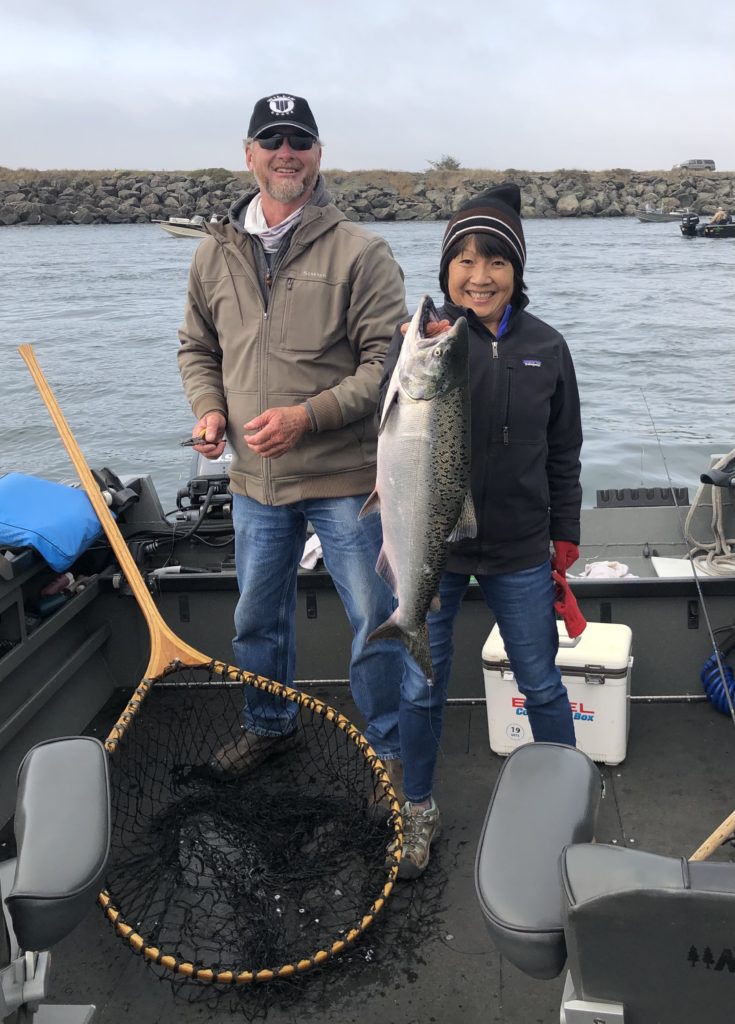 We are appreciating the good fishing years and the abundance of salmon we have enjoyed over the past 20+ years. The river level upstream on the Rogue was low due to decreased amounts of water released from the reservoir, a similar story heard across the west. Drought, climate change…? The salmon were having a hard time getting over the sandy bar created by the high wave action and decreased river flow so very few Chinook were caught by wishful fisherman trolling up and down the bay. Several wild salmon were returned back to the river; Greg says the ratio is about 50/50 hatchery but seems higher the few days we are here! We leave with two “jacks”, young chinooks that are small. The weather was perfect but the cooler returns quite empty. Thus ends our journey as head home tomorrow.